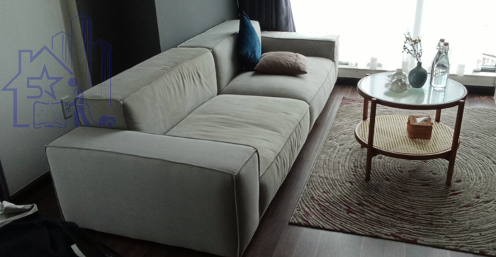 Sau thông tin đã trao đổi điện thoại thì TNCARE đã sắp xếp thợ đến tận nhà của Chị để xem sản phẩm trực tiếp, Đưa vải mẫu và tháo vỏ sofa về xưởng may vỏ vải mới, Sau đó quay lại nhà chị để lắp lại.
