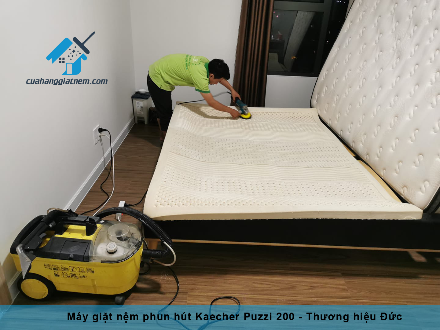 Giặt nệm hơi nóng là phương pháp dùng thiết bị máy hơi nước nóng Kaecher phun hơi nước nóng vào bề mặt nệm sau khi giặt để khử mùi, diệt khuận, loại bỏ triệt để nấm mốc 1 cách hiệu quả. Với cách giặt nệm bằng hơi nóng.