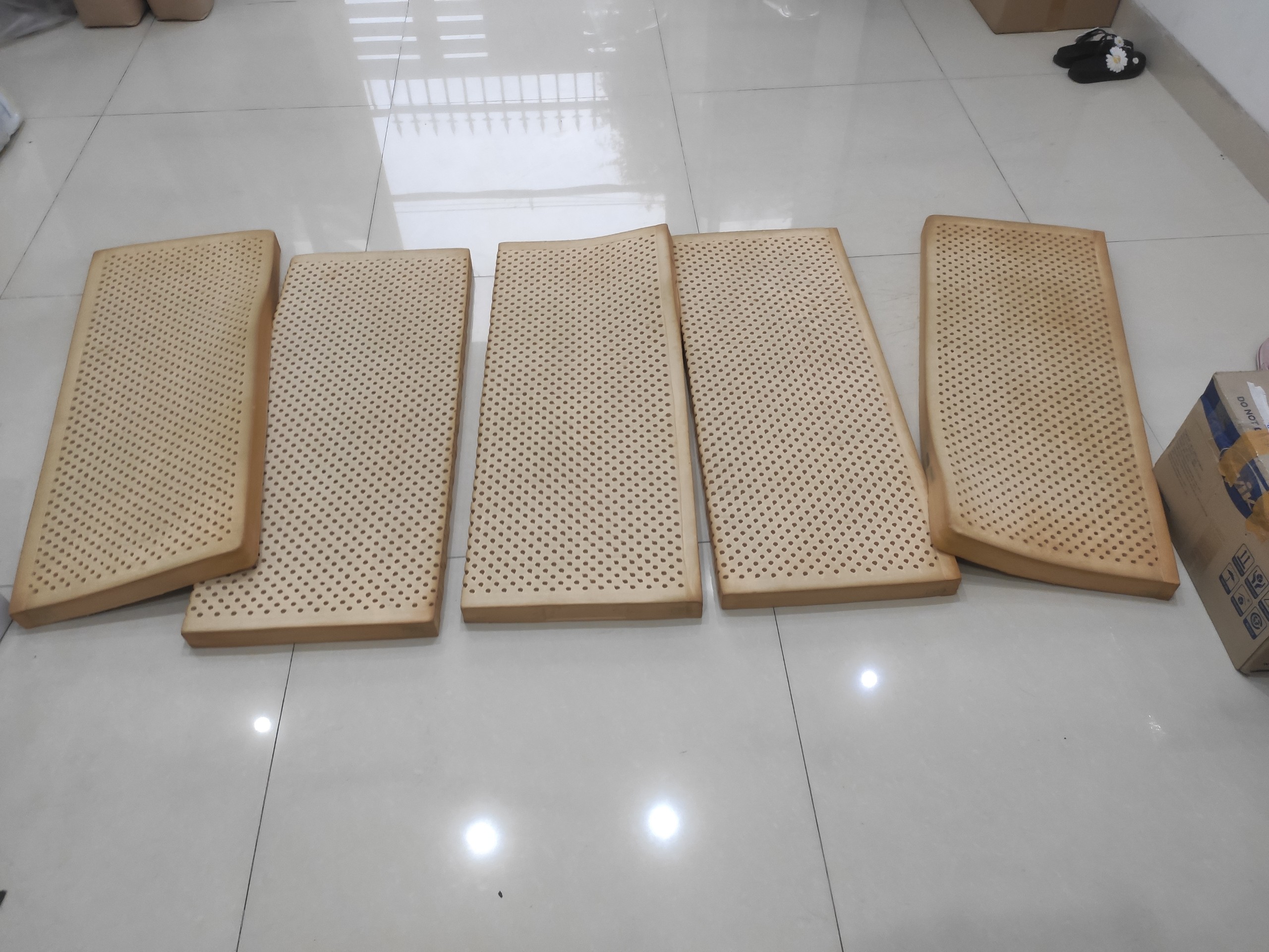 Nệm cao su gấp 5 có đặc tính giống Nệm cao su thiên nhiên nhưng đặc biệt tiện dụng, có thể được xếp lại nhỏ gọn rất nhanh sau khi dùng (5 tấm) rất thích hợp với nhà có diện tích nhỏ có thể gấp lại sau khi sử dụng.
